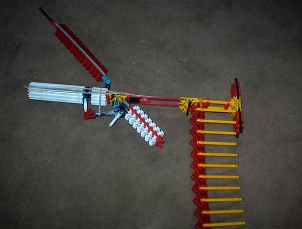 esto es algo que mi amigo y yo diseñado y hecho en cinco minutos. Con una pequeña manipulación, resultó para ser genial. Y como mi primera completo instructivo, me gustaría presentar la K'nex Mini conector hondero. Lo sentimos, no hay video, si quier