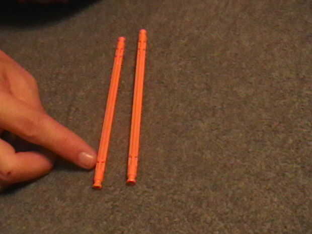 2ª versión de nunchacus de KVG el 1 uno era grande e incómodas...Paso 1: Reúna sus materiales-Conectores-4-redondo blanco4-ruedas2-azul4-gris2-naranja-Barras-8-rojo2-amarillobarras flexibles 2-grisPaso 2: hacer las manijas y cadena pic 1 es los mater