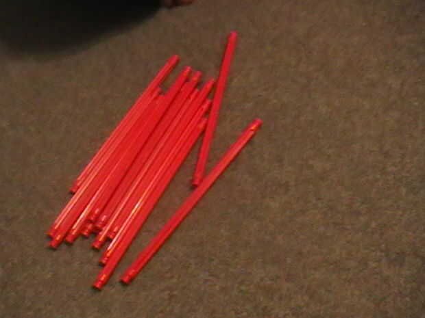 esto es KVG monja tiradas su fresco y bastante fácil de hacer.Paso 1: Reunir los materiales.Barras: 14 rojo, blanco 30Conectores: 28 rojo, 2 gris, 2 TanPaso 2: Hacer las asas. Hacer 2 de estos (7 barras rojas en cada licencia 1 espacio abierto)Paso 3