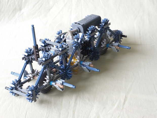 Este es un diseño de pistola goma simple y eficaz a diferencia de otras que he visto.La diferencia es que es accionado por el motor de k'nex lo que permite a múltiples bandas para dispararse simultáneamente, en lugar de hacer uno a la vez :)--No olvi