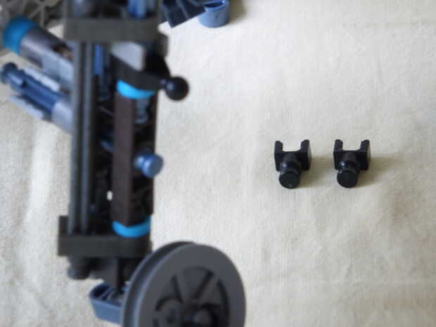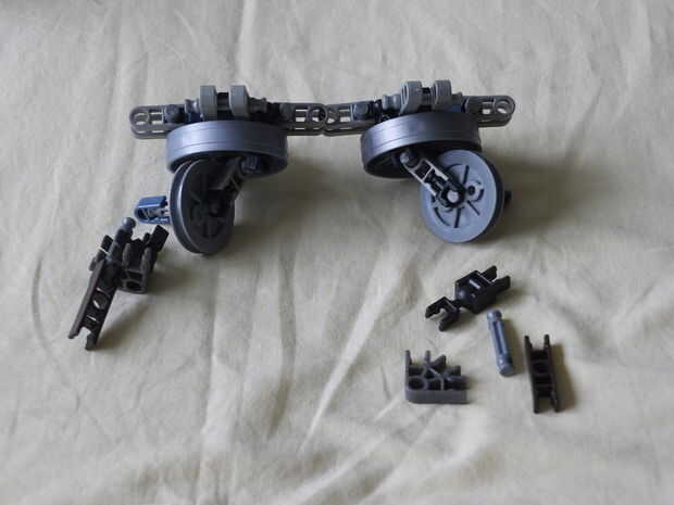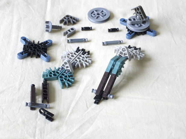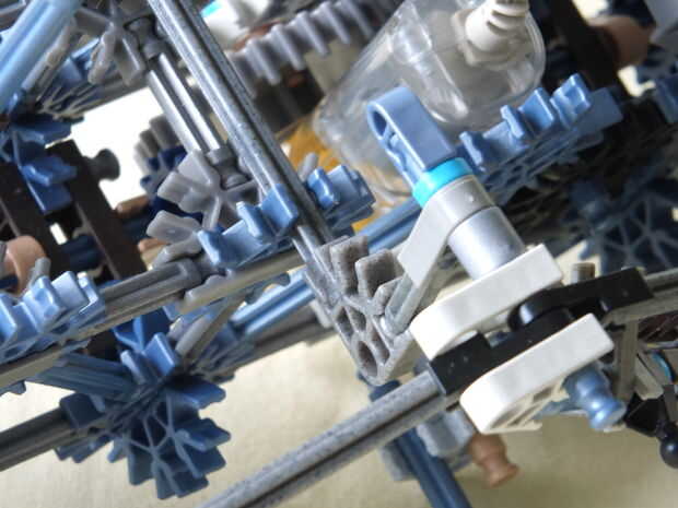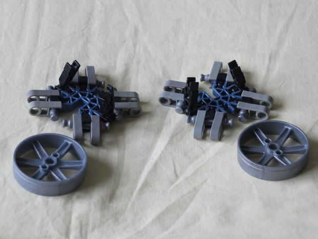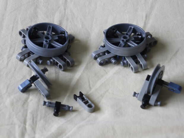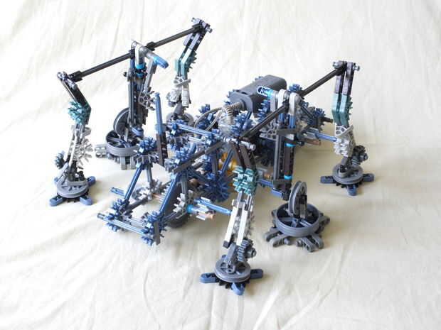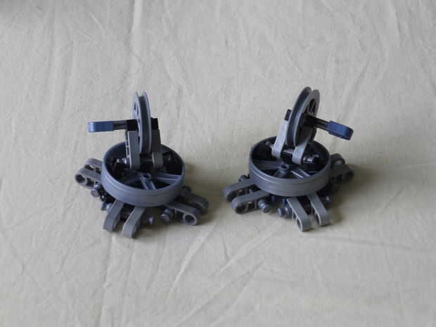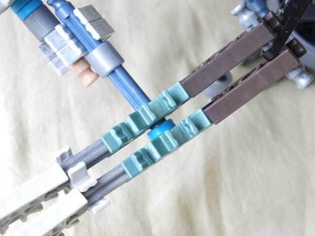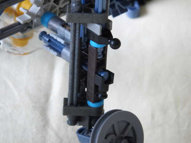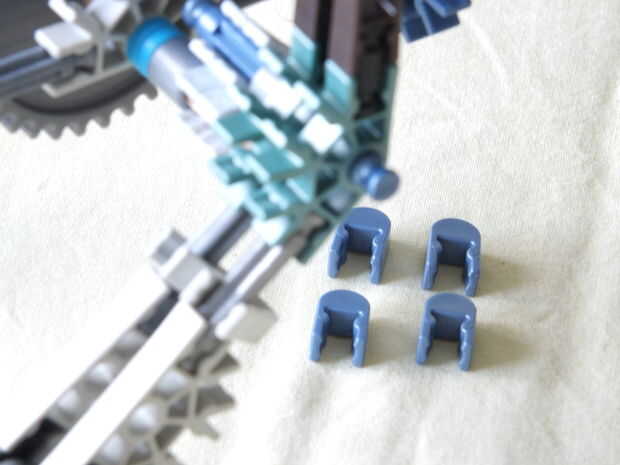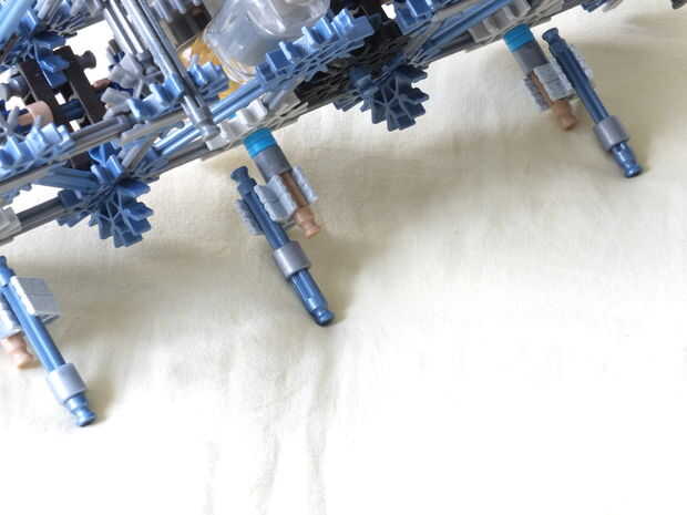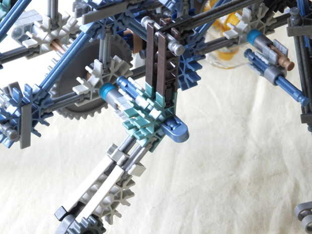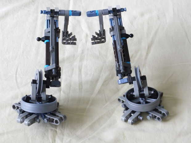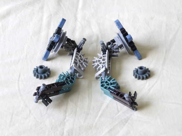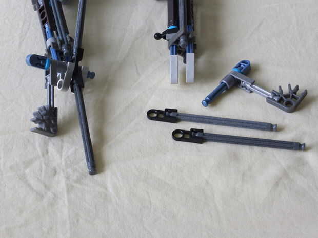 Para las pequeñas piernas, tuve que achicar las cosas, que no era fácil. Me tomó 4 diseños para llegar a la solución final. Aquí, gris engranajes forman las articulaciones.