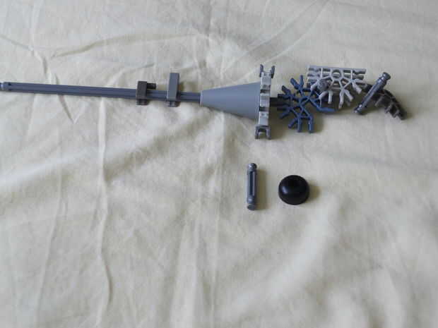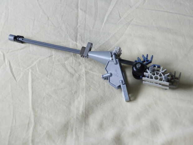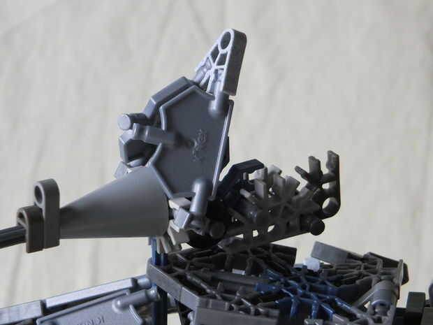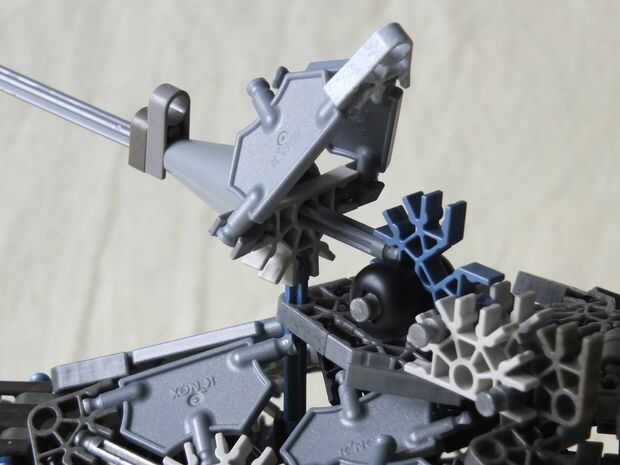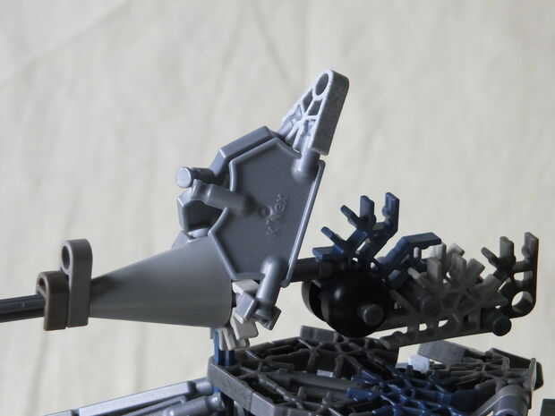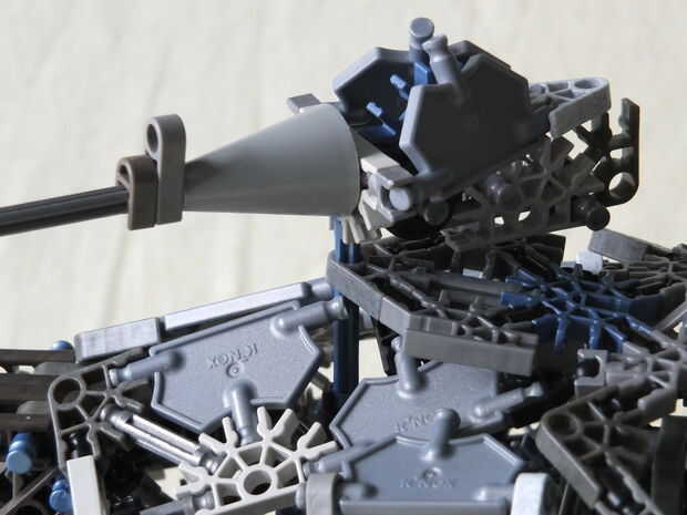 El cañón no era fácil diseñar, aunque es relativamente simple. Vi algunos discos al lado, así que añadido K'NEXmen cabeza en su lugar. También aquí hay dos mini paneles que imitan la forma original. Si utilizas tu imaginación, incluso hay un banquito donde el artillero puede sentar :)