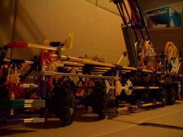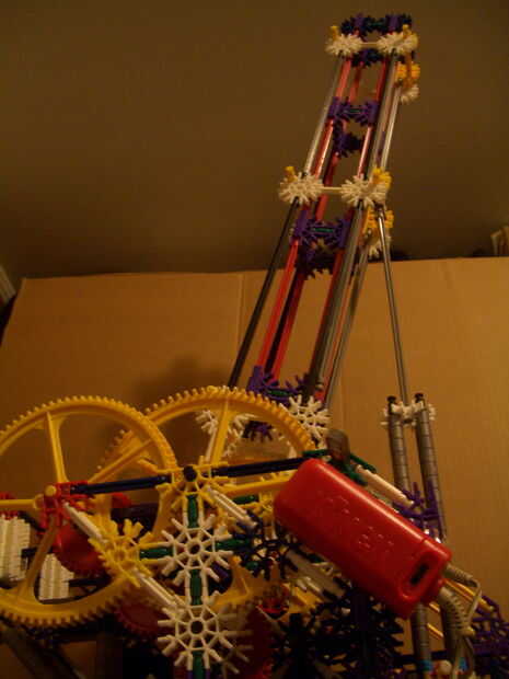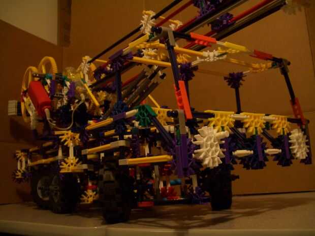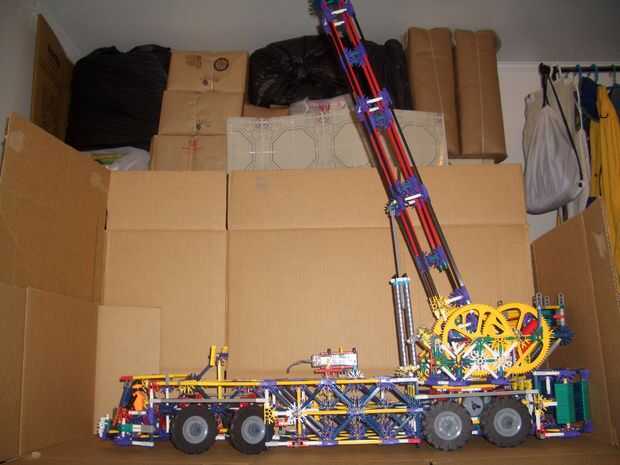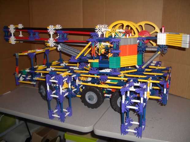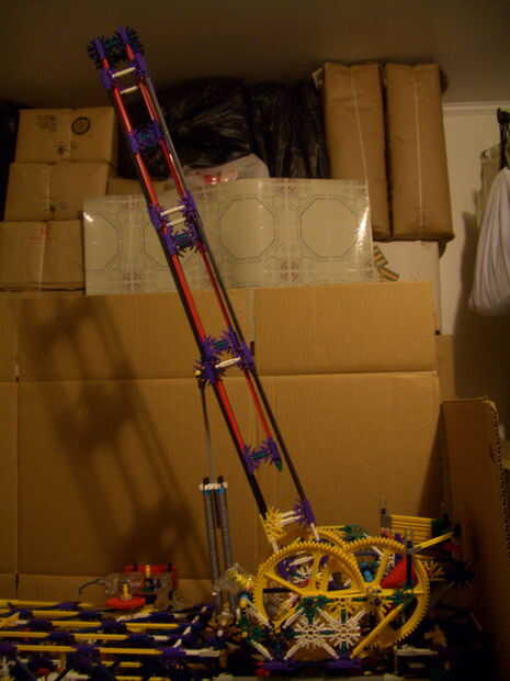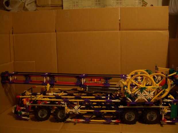 En cuanto al proyecto en sí, creando una grúa móvil completamente funcional en forma de K'NEX se está convirtiendo en extremadamente difícil y que se acerca de la imposibilidad. La parte más difícil de esta idea es idear un) un método para construir un auge creciente que es no sólo capaz de permanecer despierto y puede también levantar una masa, pero que no es muy pesado, o b) tiene suficiente poder con pequeños motores para elevar un auge fuerte y levantar una masa. En este modelo, he optado por la opción (a) debido a la restricción del tamaño del vehículo. Opción (b) obliga al modelo a ser desproporcionada en relación con sus ruedas, brazos de grúa en la vida real son aproximadamente 1/4 del ancho de la anchura del vehículo.