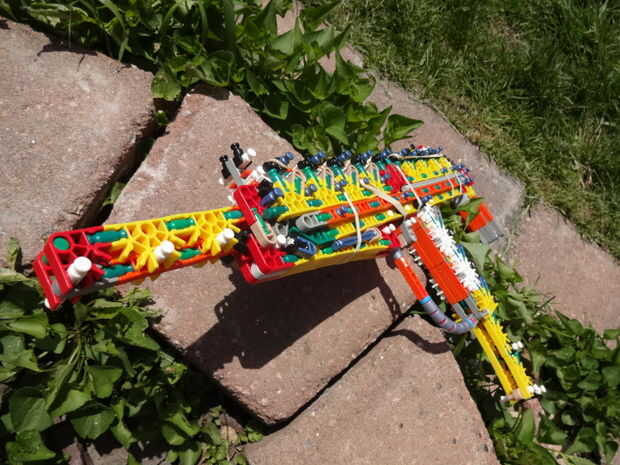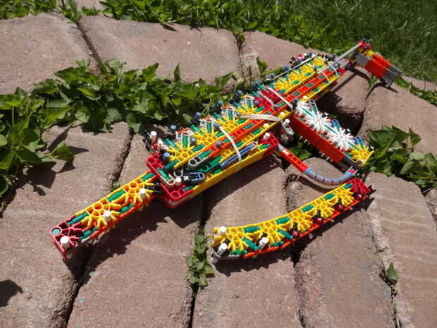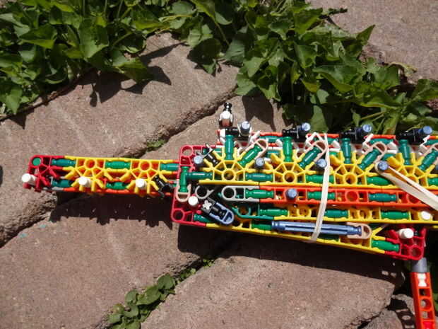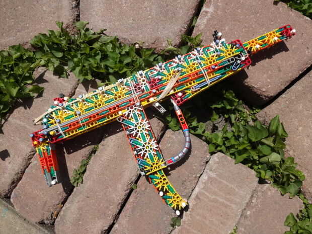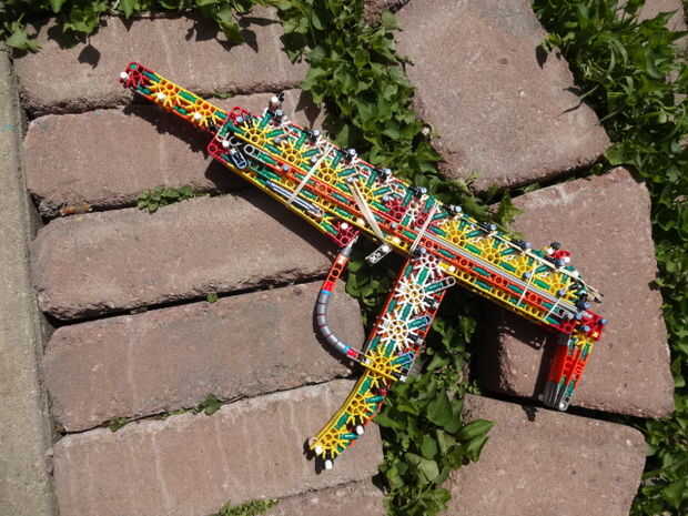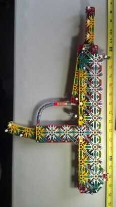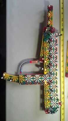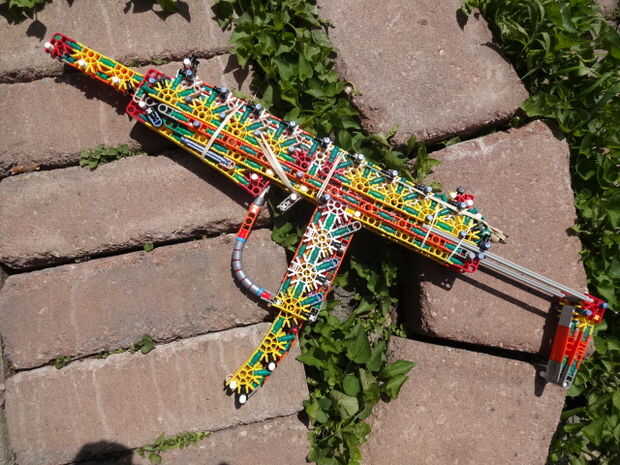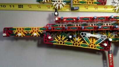 Esa descripción encaja también esta réplica K'NEX bien. En tamaño, se siente casi como un AR, pero cuando se trata de características corporales, todavía contiene un compartimiento de empuñadura de pistola, así como una corta sobre todo el cuerpo. Con características como una tapa frontal vista, una culata extensible y una alta capacidad de cargador, que este arma sería genial en un K'NEX interior de la guerra, si perfeccionado.