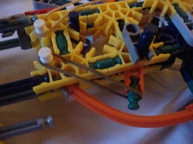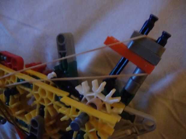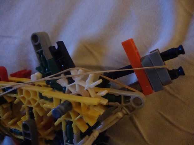 Agregue bandas de goma como se muestra en el gatillo y martillo y tire hacia atrás el martillo. verás que el martillo tiene dos puntos de captura. uno es medio martillo, para fines de recarga y la otra es polla completo, para el fuego.