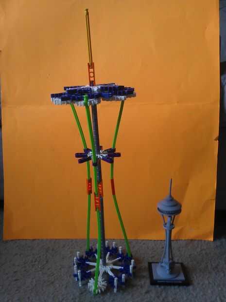Hola! Este es un modelo de la aguja espacial de Seattle que construí desde K'NEX. Es mucho más grande y luego la versión de Lego que estoy comparándolo con, pero no parezca tan realista. Voy a publicar un ible si preguntan. Gracias por ver!