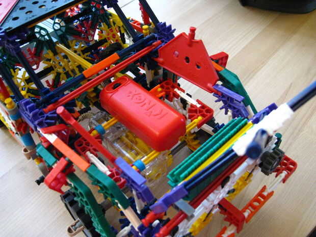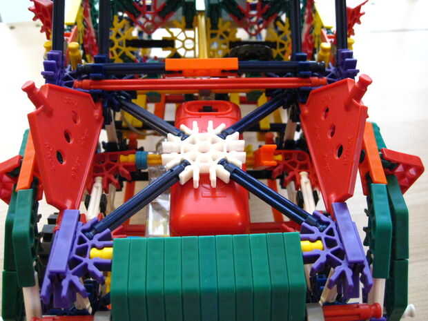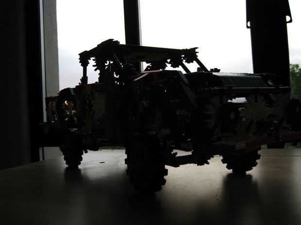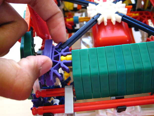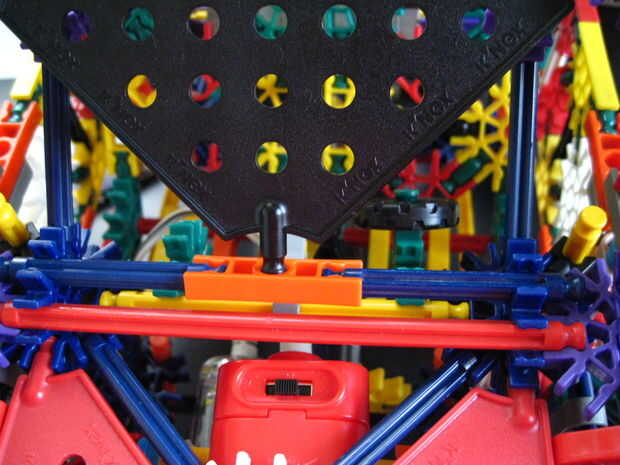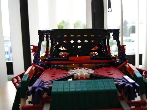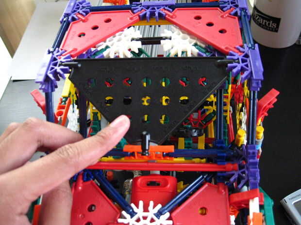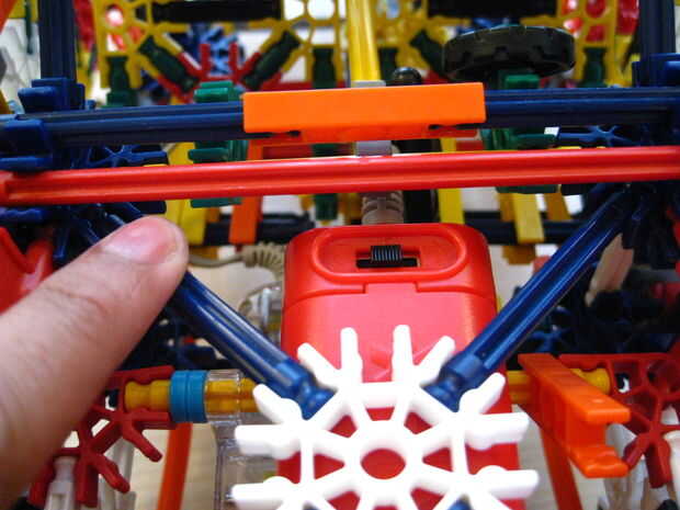 Esto hace que el carro mira enojado (jajaja). En la foto 1, pulse la tecla debajo de la cabina en el lugar indicado para soltar parte de la pieza de triángulo negro. Baje como en foto 2 e Inserte la pieza suelta en la parte naranja como se muestra en la foto 3.