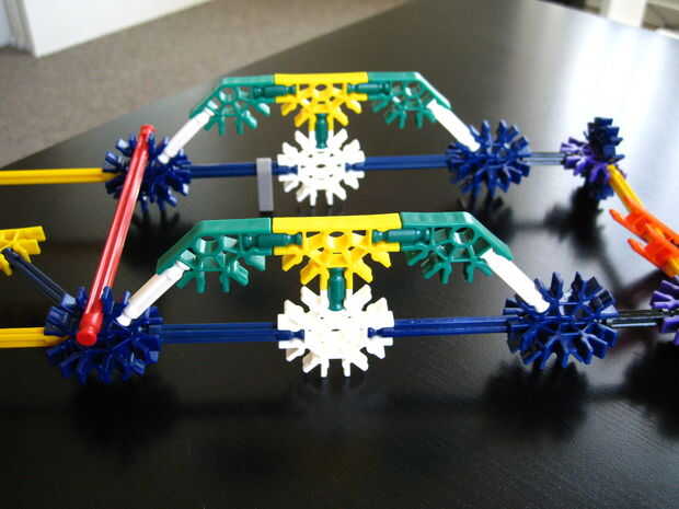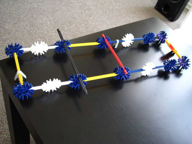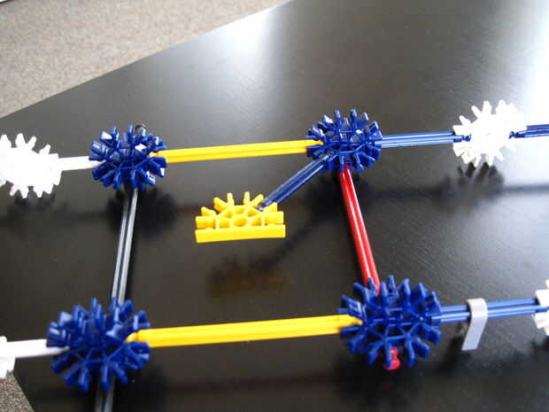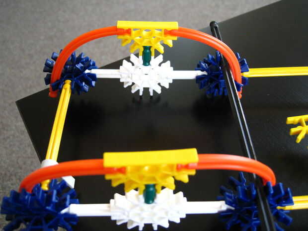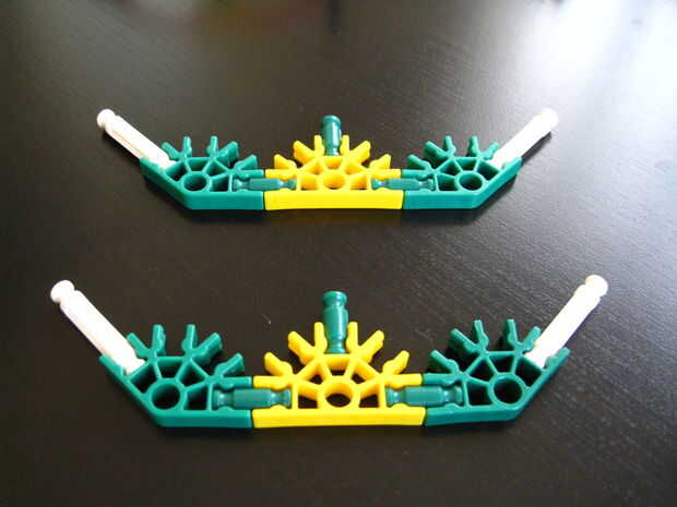 Únete a las mitades de dos chasis con las cuatro barras como se muestra. Esta es la parte inferior del chasis.