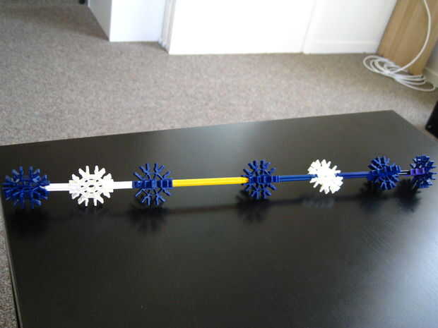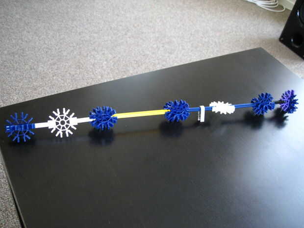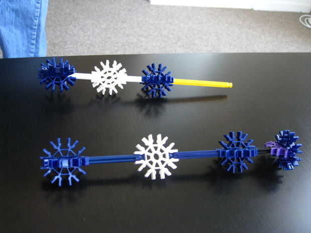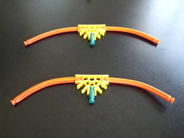 Únete a las piezas como esta, introducir un conector gris de la barra de uno en uno de ellos como se muestra en la foto 3. Este será el lado izquierdo del chasis. El lado izquierdo de la imagen denota la parte delantera del chasis.