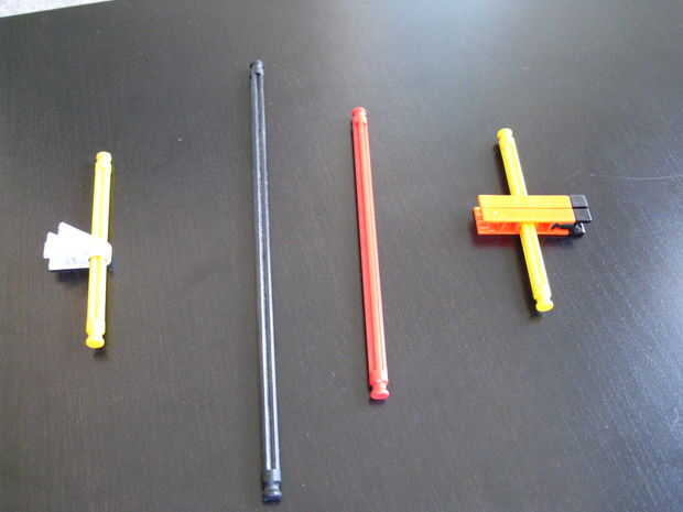 Preparar cuatro barras como se muestra. La barra negra es la más larga, un gris trabajará demasiado.