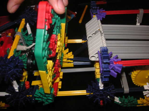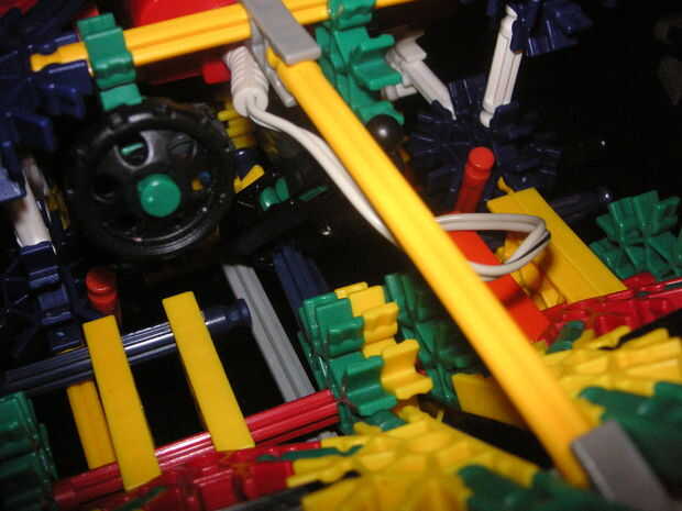 Fije la varilla azul sobresale del chasis aquí en el conector verde del asiento del conductor. Ésta aparecerá torcida, pero es prevenir la transmisión del frotamiento.