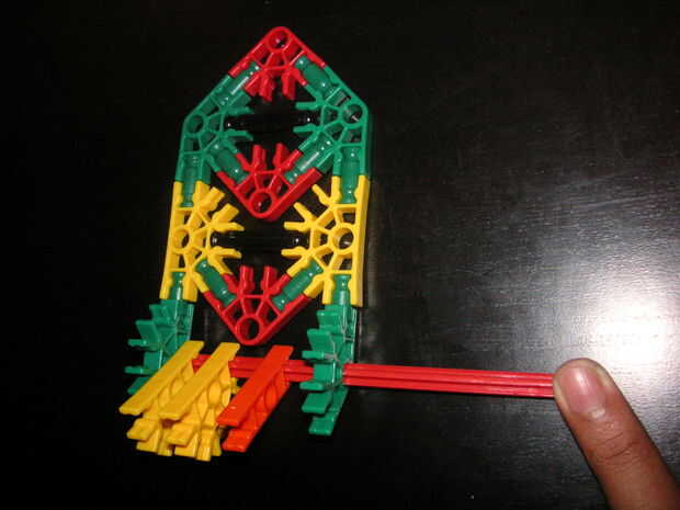 Deslice una barra roja parcialmente a través de uno de los asientos como se muestra.
