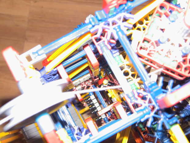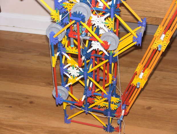 3. el puente se levanta hasta que la polea en la parte de atrás tira el interruptor de la madre hacia abajo en la posición de apagado. 2 motor se apaga automáticamente sí mismo.