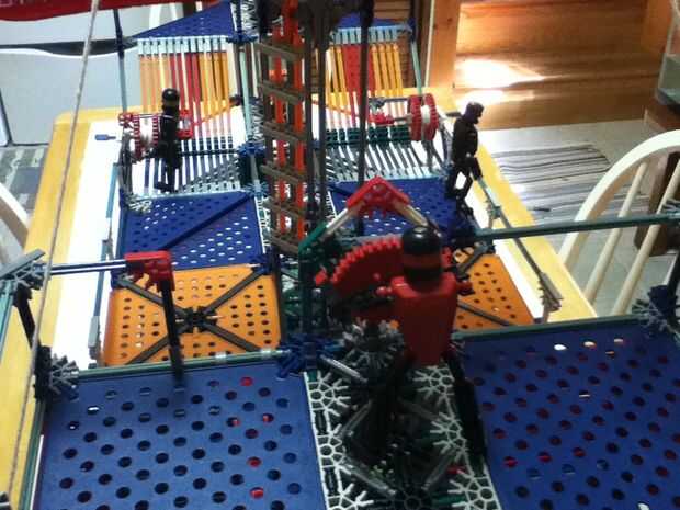 Hay una escalera para el nido de cuervos y escaleras para los carriles del protector de cubiertas superior e inferior alrededor de las cubiertas para que nadie caiga, dos puertos de arma con cañones para luchar contra otras naves.