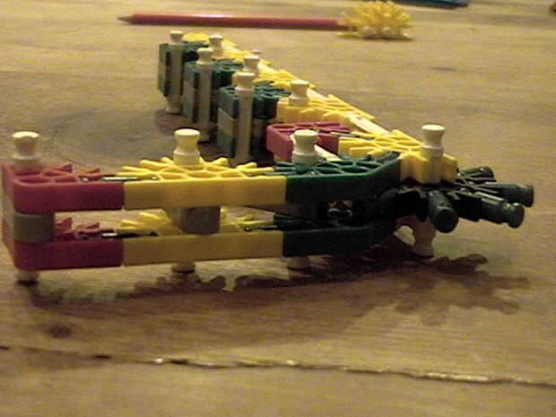 En este tutorial usted aprenderá cómo hacer una banda de goma semi automática pistola de K'NEX.Dependiendo de las bandas de goma usa, la pistola puede contener hasta 8 rondas de munición. Se dispara un tiro para cada tirón del disparador.En un anteri