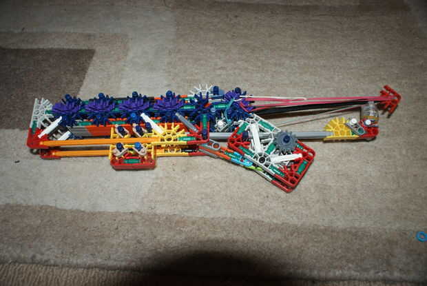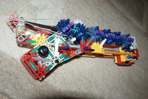 Super k'nex dulce bloque trig. pistola mag puede contener 16 redondos, casi nunca bloques, realmente estable, dulce diseño, todo lo que pueda desear. Puede tomar mucha presión, así que la pila de los elásticos. brotes azules barras la longitud de mi