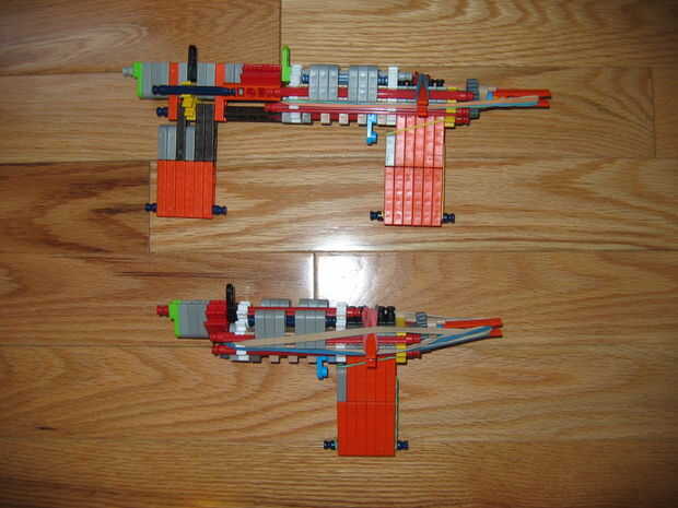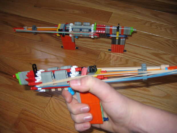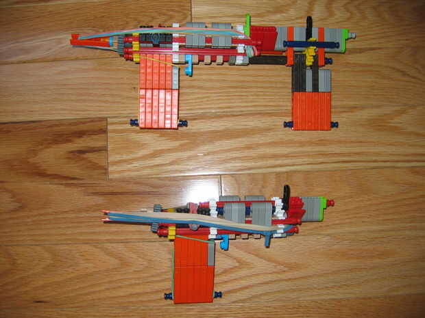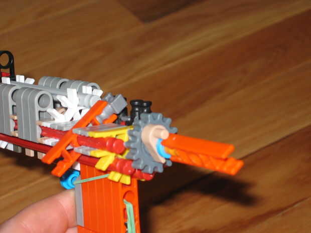 En primer lugar, doble lazo uno rojo pequeño, entonces strech que del extremo del disparador, a través del gre pieza entonces alrededor de la otra uno sobresale el otro lado de la pistola. Luego agregar el resto de los elásticos, desde la punta del conector naranja en el extremo de la barra de memoria ram a la parte delantera de la pistola. Asegúrese de que no hay en el camino de la salida del cañón. Llevar 3 piezas azul y empujar a la derecha en el mag, como visto en el vid. Estamos listos. ¡Que te diviertas!