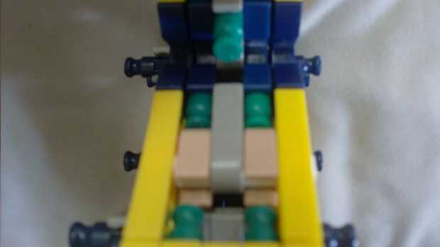 Hi i made this k'nex bulldozer , which has steering and a digging scoop. También tiene unas escaleras ubicadas en la parte trasera del vehículo. El manejo posterior es una gran idea porque ayuda a la topadora manejar mejor que un coche alrededor de l