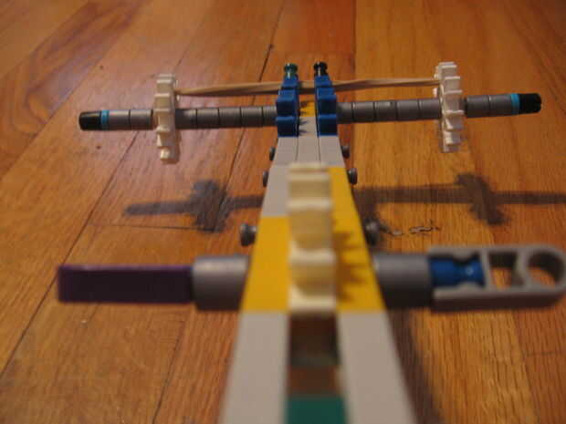 el otro día conseguí mantener un montón de Lego y goma bands.so me decidí a hacer una ballesta impresionante. Dispara a 15 millas por hora. es muy potente y bien precisa. se realizó con la ayuda de mi amigo.