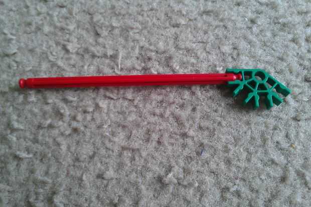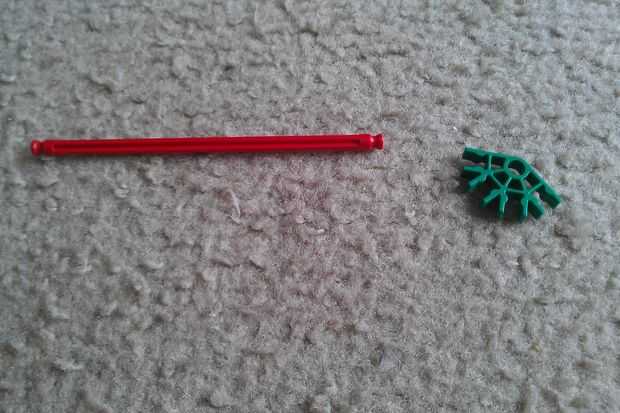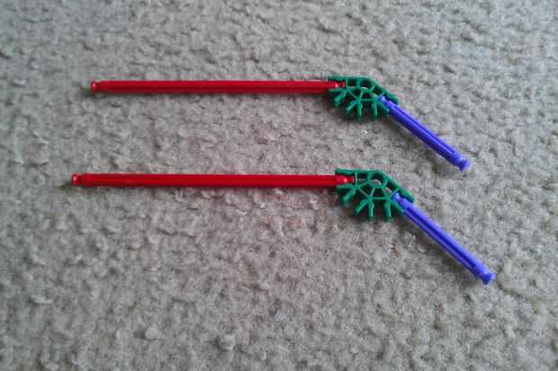 Tomar una barra rojo y conéctelo a un conector verde. A continuación, agregue una barra flexible morada. Repita el procedimiento para obtener dos piezas.