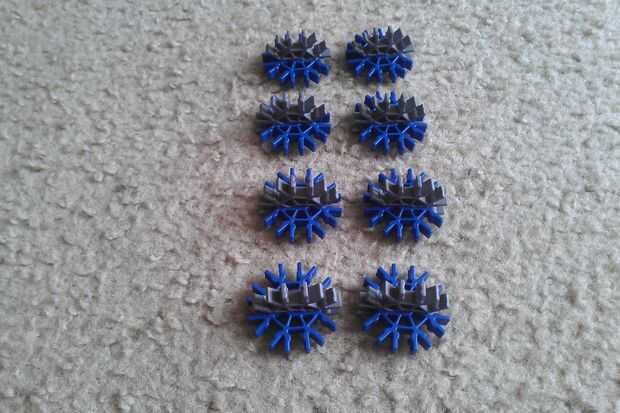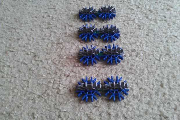 Separar las piezas que ha hecho en cuatro pares y Conecte cada par con barras verdes.