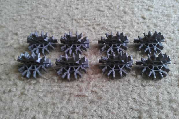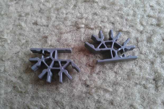 Tomar dos conectores gris y deslícelos juntos como se muestra. Repita el procedimiento para obtener ocho piezas.