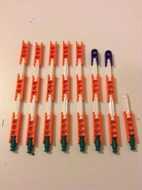 lo guay es tener un cubo de K'nex? Sí, muy chulo. Dentro de sólo unos minutos usted puede tener uno en tu escritorio. Así que comencemos.Paso 1: Contar las piezas Estos son los "ingredientes" que necesita.se pueden cambiar todas las piezas para