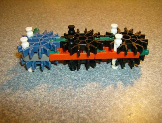 A k'nex gun shaped like the letter "S". O 5. Se hizo porque echaba de menos entrar en el torneo de Jollex y decidió publicar un arma basado en los requisitos del concurso, una pistola con gatillo complejo con partes móviles. Tiene un conector gr