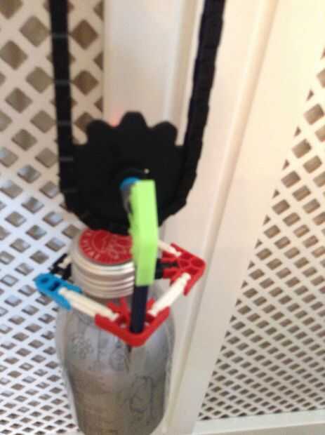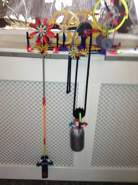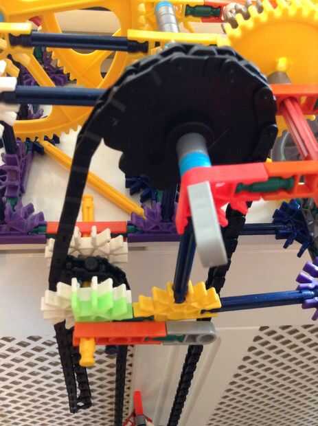 Como una modificación adicional, podría reemplazar la cadena con una cadena de k'nex para que sea posible levantar el peso sin parar el reloj. Este método es más efectivo para usar un peso más ligero pero general más frágiles y propensos a romper. El peso de elevación también es frustrante como la cadena es difícil mantener alineado. Sería bueno experimentar con pero personalmente le guardo la cadena.