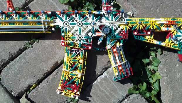 Este R5 K'NEX es fiel a su estilo con su estructura uno-a-uno, ancho revista 5.56, y monumentos de hierro grandes, este R5 serían una gran arma de guerra K'NEX interior. Con una revista de ronda 15 +, un sistema pin-guía y un marco modular, esto es un divertido arma a ensuciar con!