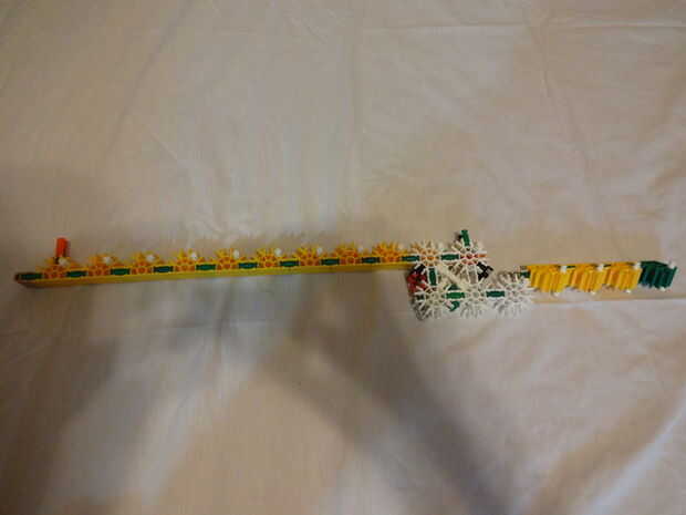este arma es un rifle de francotirador kne'x extremadamente de gran alcance y una pistola metralla todos en un cañón.Paso 1: La acción Las varillas bendy amarillo ven más cool, así que uso es puede!Paso 2: El mango Todo lo que tienes que hacer es jun