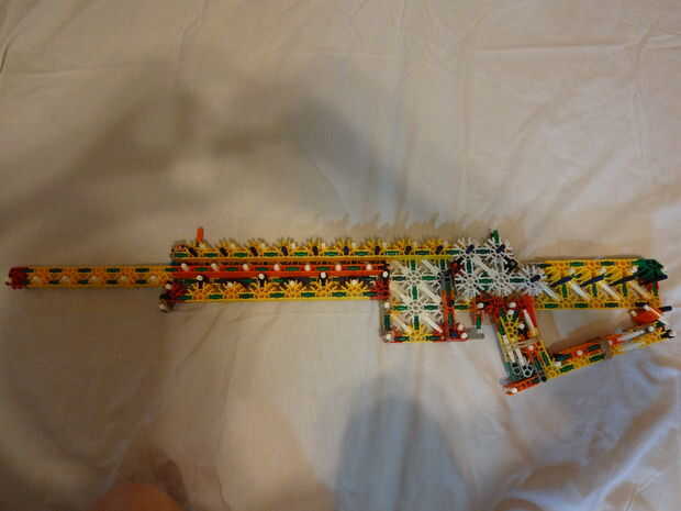 este arma es un rifle de francotirador kne'x extremadamente de gran alcance y una pistola metralla todos en un cañón.Paso 1: La acción Las varillas bendy amarillo ven más cool, así que uso es puede!Paso 2: El mango Todo lo que tienes que hacer es jun