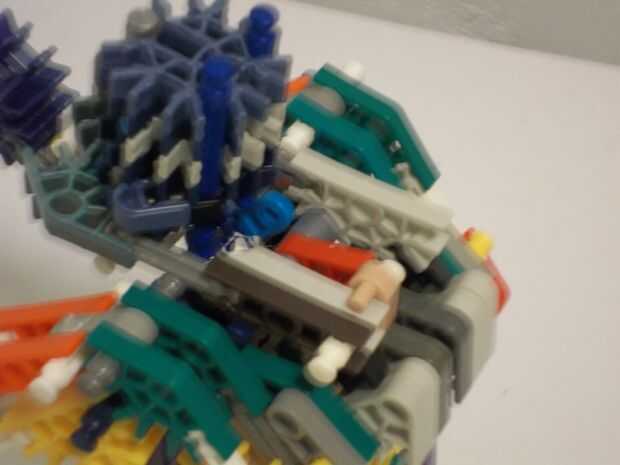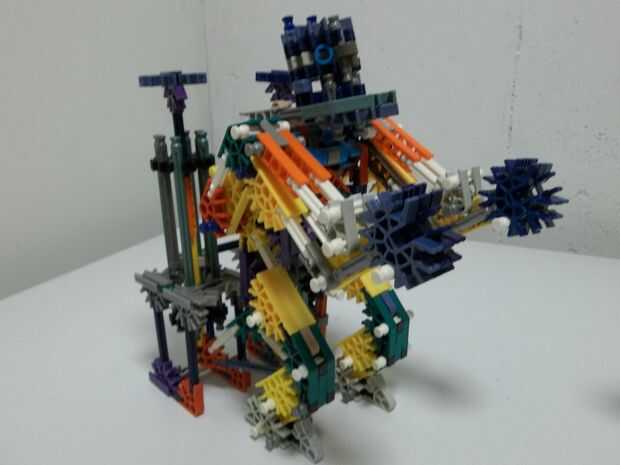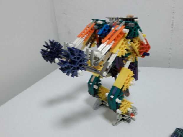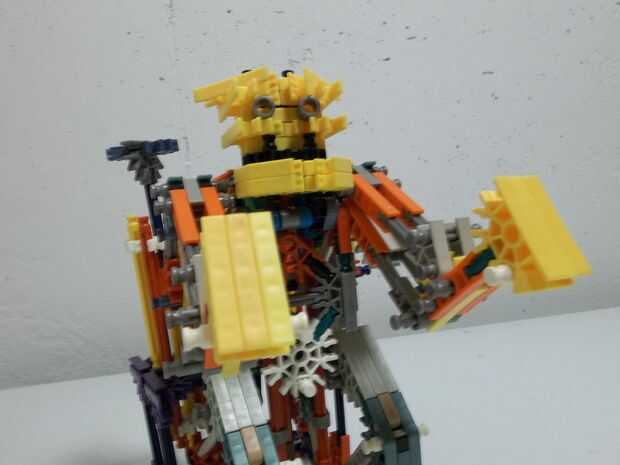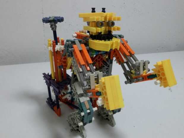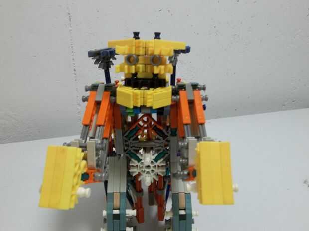 El robot fue hecho de madera y algunas piezas de un antiguo conjunto de K'Nex. Es similar en estilo al Sr. Tipsy de Raivan como se muestra aquí. Diferencias en esta versión incluyen la forma, tamaño, número de piezas y rotación del punto medio.En cua
