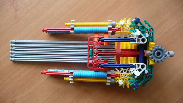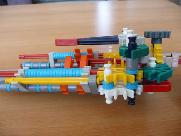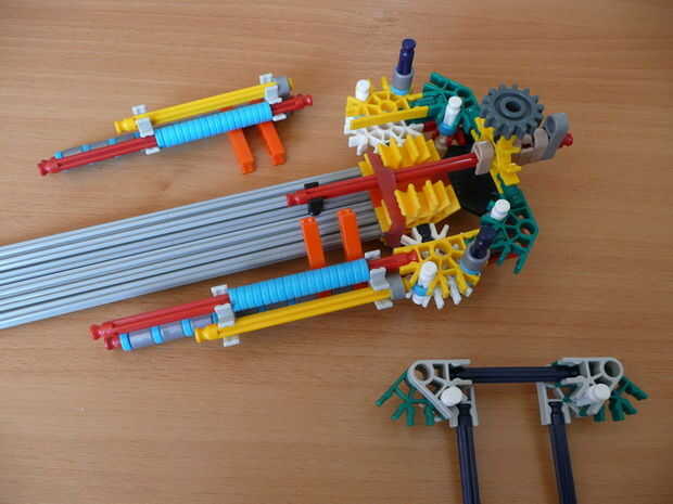 ¡ Hola!El Lanzador de barra de flexión es un nuevo tipo de lanzador de bolas de K'nex. El lanzador hace no utilizar gomas elásticas, en cambio, como su nombre indica, utiliza una barra de flexión para lanzar bolas. Esto elimina la necesidad para la s