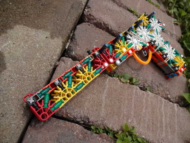 Esta réplica K'NEX del modelo 39 viene en cerca de 13 pulgadas y tiene una revista de RD 7-12. El silenciador / supresor puede ser separado fácilmente, y los guardias de vista también son fáciles de quitar. El disparador y el gatillo guarda configuración es cómodo, y los lugares de interés tienen un radio lo suficientemente largos para más cerca gama de encuentros.