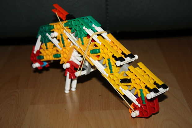 bueno, no exactamente, pero es similar, no?Este es mi primer arma K'NEX "real" que hice por mí mismo sin cualquier tutoriales ni nada.Para mi primer arma de fuego, creo que salió bien. :)Pros:- Activar real-Barril simple-Fácil de hacer-Puede cae