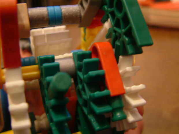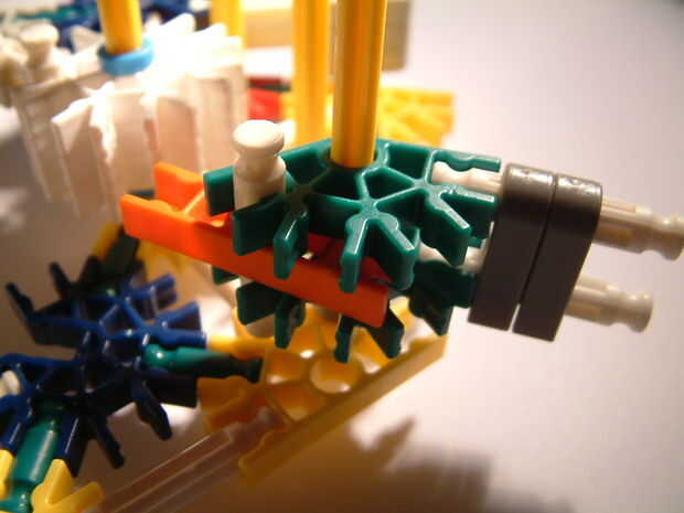 7. Coloque las piezas sobre la barra amarilla arriba del gatillo como así que, esta vez el orden es importante. También es necesario el espacio a la izquierda de las fotos.