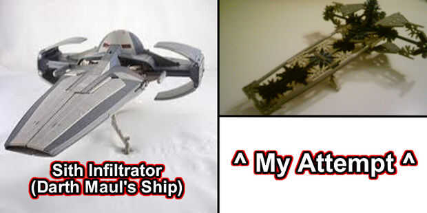 Así que quería hacer un vehículo de Star Wars de K'Nex. Conozco personas han hecho cazas estelares y speeder bikes pero no creo que nadie ha hecho antes. Así que aquí está, una versión de K'Nex de Sith Infiltrator de Darth Maul de la amenaza fantasma. Las precuelas pueden haber sido terribles, pero algunos de los vehículos eran cool. Miré algunas fotos en línea y había modelado de eso. No es una maqueta réplica exacta, pero no creo que se ve a mal, ¡ así que si te gusta esta idea y construir el instructable.