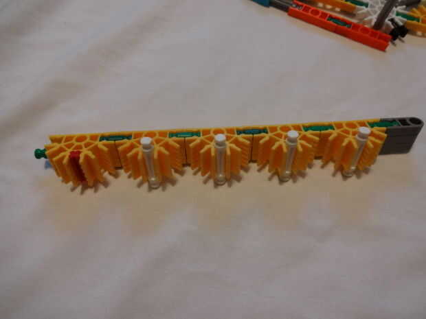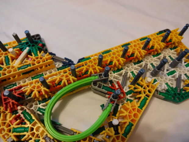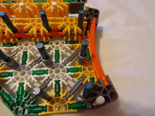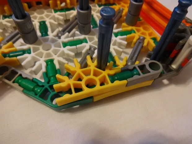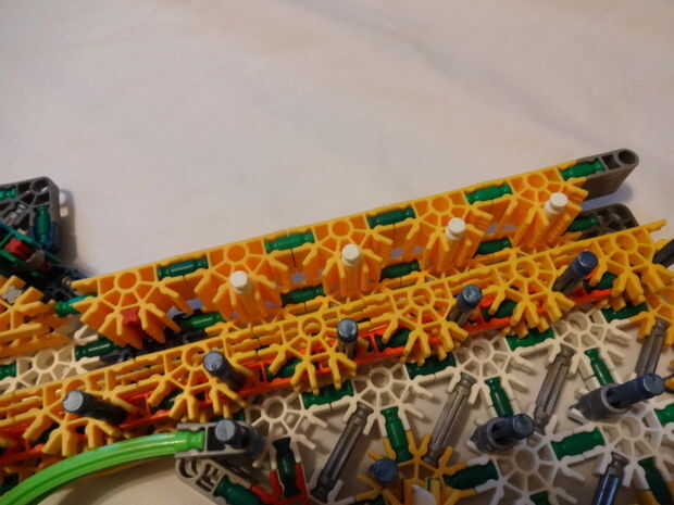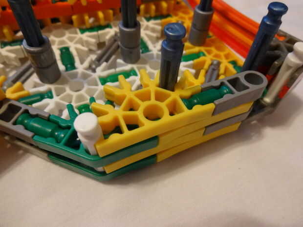 Mi hermanita le encanta su telar del arco iris y haciendo pulseras y cosas en su telar. Tiene una caja llena de bandas de colores. Miré a su telar y parece bastante sencillo así que decidí construir mi propio telar de K'NEX piezas. He intentado hacer