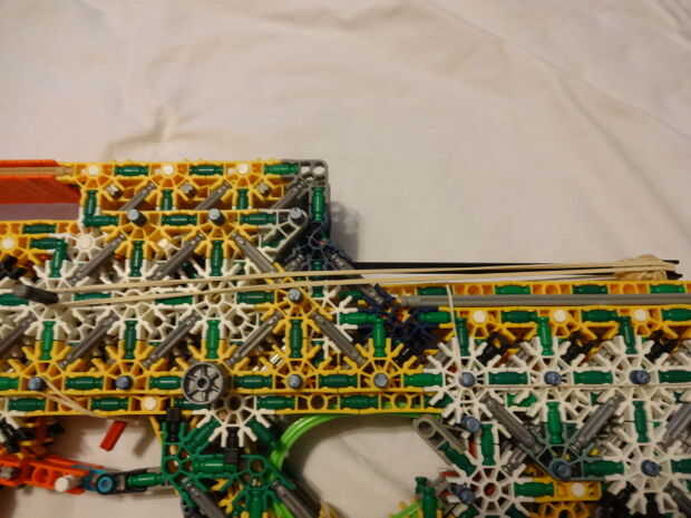 Mi hermanita le encanta su telar del arco iris y haciendo pulseras y cosas en su telar. Tiene una caja llena de bandas de colores. Miré a su telar y parece bastante sencillo así que decidí construir mi propio telar de K'NEX piezas. He intentado hacer