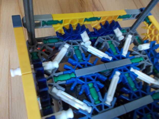Este es el segundo de una serie de 3 ascensores nuevos en nuestra máquina de la bola de k'nex imposible.Esta elevación es bastante pequeña, lo que es útil para espacios pequeños donde tienes que hacer que la bola suba un poco. Ahora, sé que puedes es
