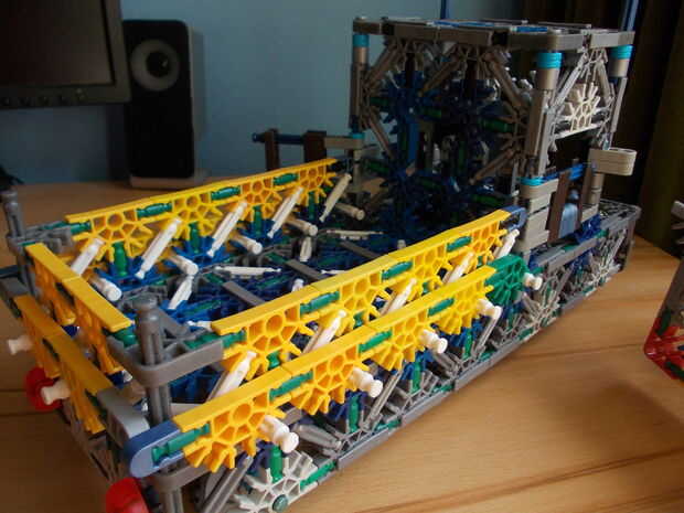 Este es el segundo de una serie de 3 ascensores nuevos en nuestra máquina de la bola de k'nex imposible.Esta elevación es bastante pequeña, lo que es útil para espacios pequeños donde tienes que hacer que la bola suba un poco. Ahora, sé que puedes es