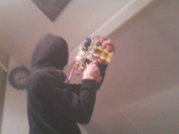 que quería hacer algo con mi hermano, y qué mejor que para hacer que una réplica de uno de los más cool buscando armas en Halo? Todo lo que necesitas son algunos 2x4s, algún tipo de pequeño cono, tubo circular 3/4 pulgada de ancho, un palillo y pintu