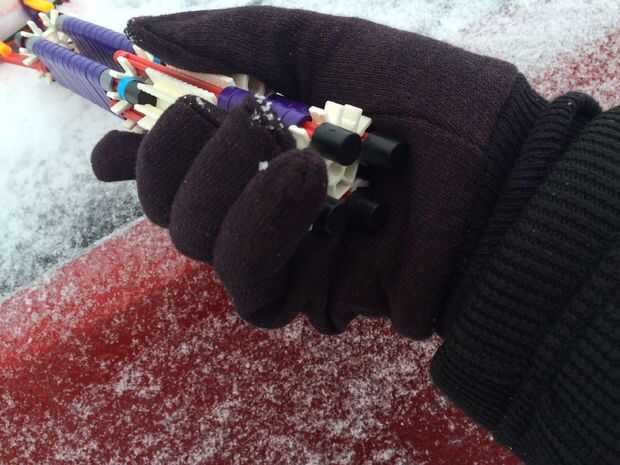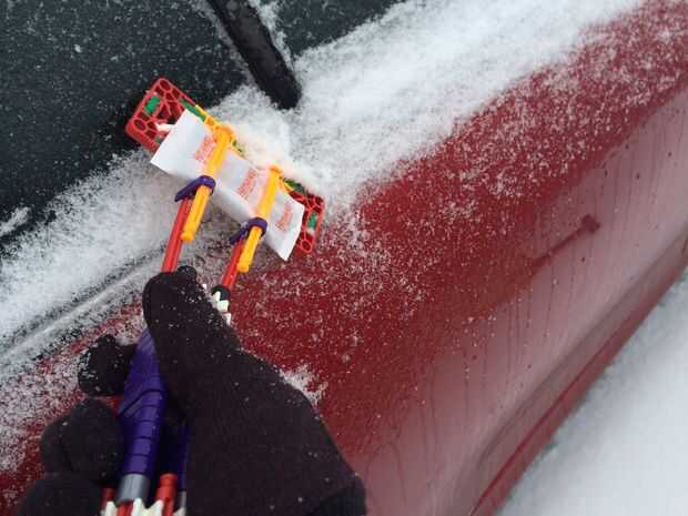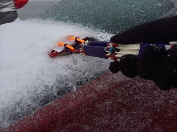 El raspador de hielo K'nex práctico permite al usuario romper hielo fino y las virutas de la nieve con facilidad debido a su soporte calentador de mano incorporado. El calentador ayuda a derretir nieve y hielo y hace claro un coche mucho más fácil. También cuenta con un mango orientado a la comodidad que se ajusta a los dedos.