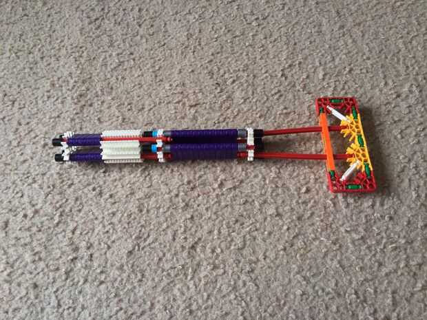 Este es el segundo de una serie de 3 ascensores nuevos en nuestra máquina de la bola de k'nex imposible.Esta elevación es bastante pequeña, lo que es útil para espacios pequeños donde tienes que hacer que la bola suba un poco. Ahora, sé que puedes es