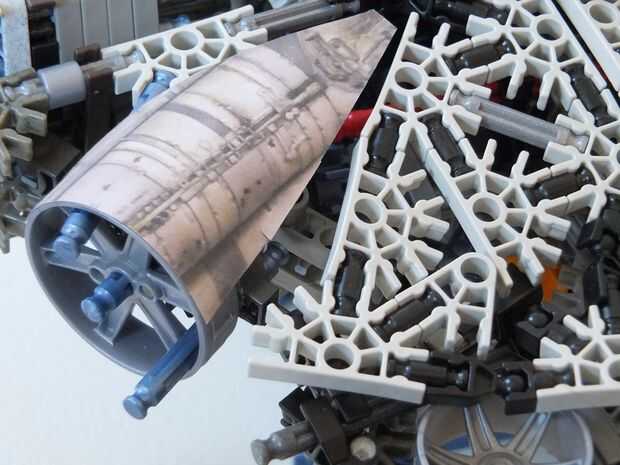 El soporte de exhibición es siempre algo muy personalizado para hacer, y en el caso de este modelo de 1,7 kg, tiene que ser fuerte! Los accesorios sólo reales son 2 barras, que se ponen ligeramente en ángulo en Z y el eje y. Que da al modelo un aspecto más "vuelo". Más lejos más, se agregan 2 soportes del lado, para que el halcón no tambalearse en las varillas. Pero incluso sin ellos, el modelo es tan equilibrado que se queda puesto. He creado un archivo .pdf que tiene la hoja y el recorte de papel. Mi inspiración para el plaquette de información proviene de los sistemas de colectores final de LEGO, pero esta vez, hice mi propio, desde cero. Sólo he usado MS Word y Paint, puede verse cómo lo hice aquí.