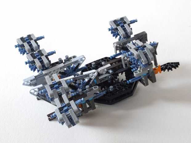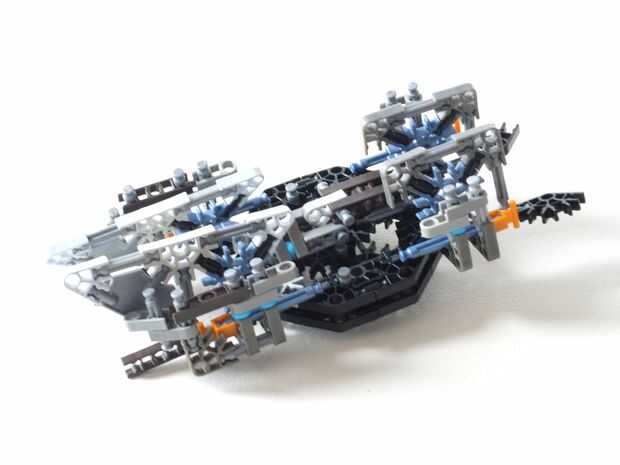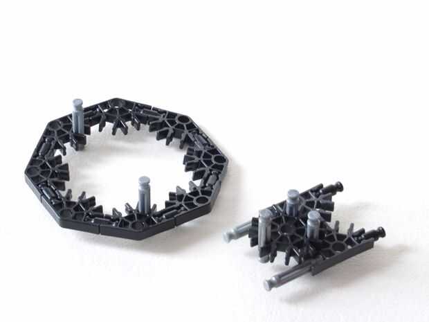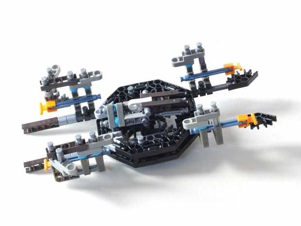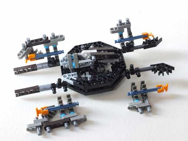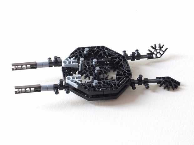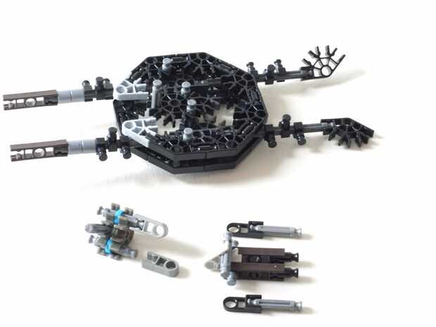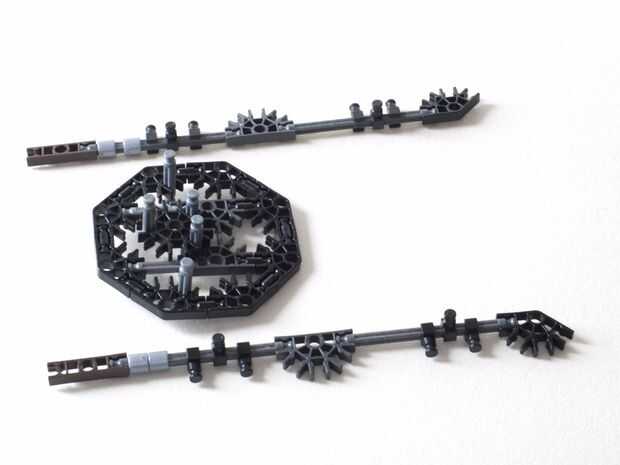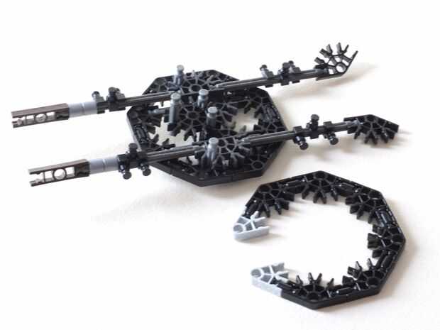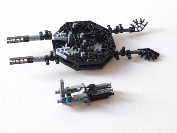 En primer lugar, comienzas haciendo el círculo de fondo y el cañón láser cuádruple, después de que usted fije el tren de aterrizaje. Durante el entero instructable, el modelo se reclinará sobre el tren de aterrizaje. Si usted quiere poner en el soporte de exhibición, tienes que retraer, como se muestra en el video de la introducción.