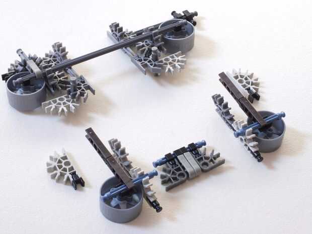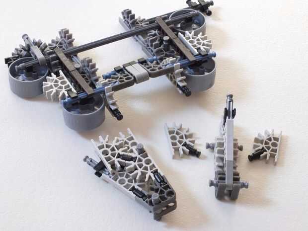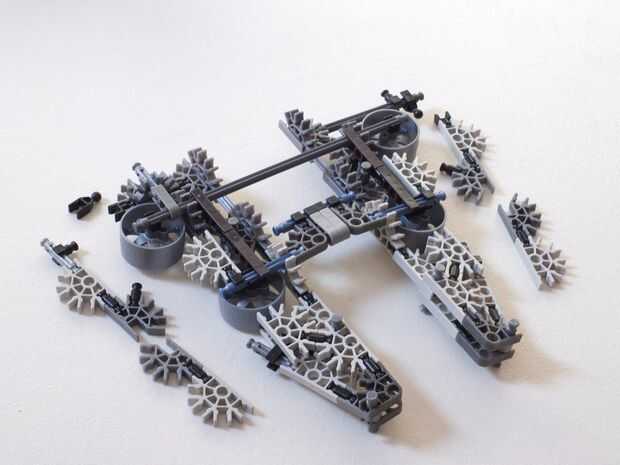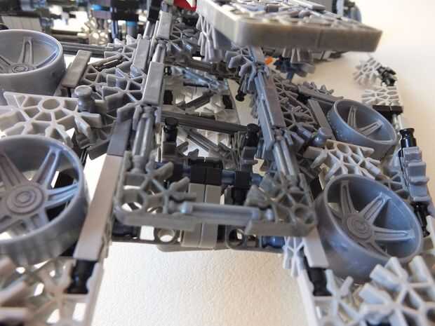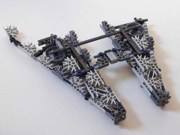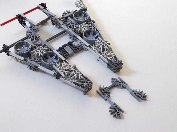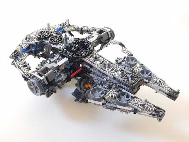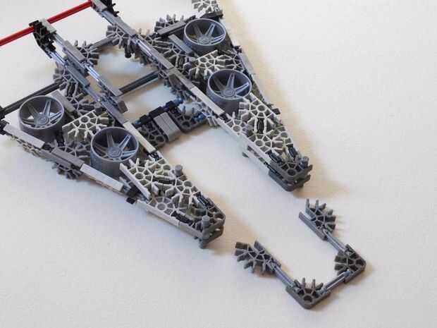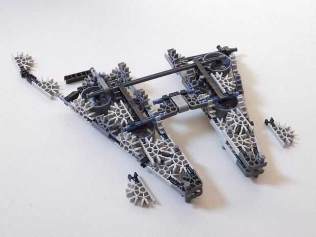En primer lugar, se hacen diferentes partes de la parte frontal del halcón. Esencialmente, ambos lados son su imagen del espejo, aparte de unas pocas piezas. Se convierte en una pieza grande que se adjunta más adelante, en conjunto, a la nave. Esto puede ser un poco complicado, como las aletas delanteras tienen que cerrar. (Es por eso que quedaron sin conectar uno al otro en primer lugar).