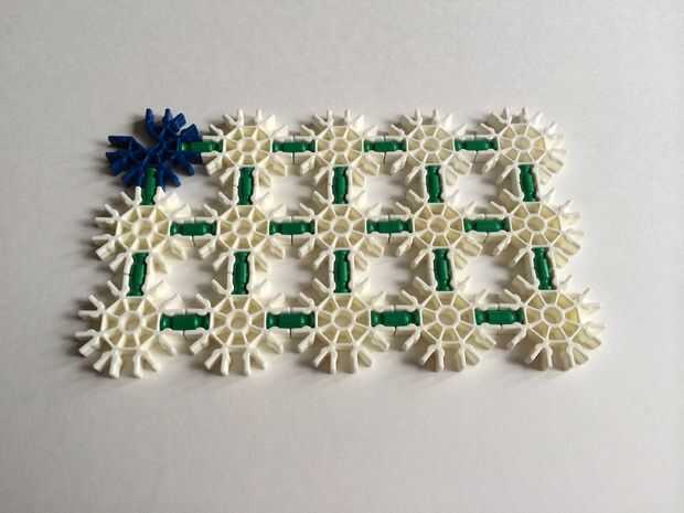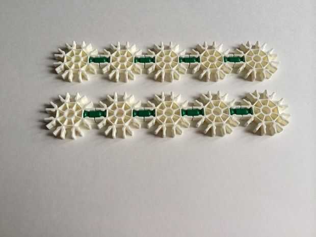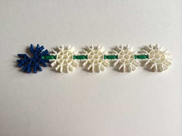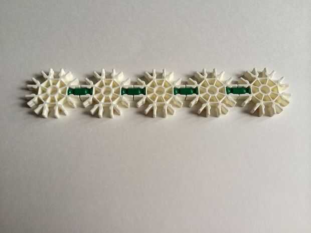 Tomar cinco conectores blanco y conectar usando barras verdes. Repita el procedimiento para obtener dos filas.