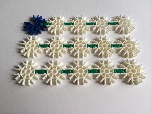 Organizar las tres filas como se muestra y conectarlas usando barras verdes.